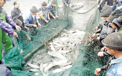 记者昨日从江西宁都县团结水库管理局得知,水库作业人员拦网捕捞水产品时有意外惊喜,捕捞到两条巨大无比的青鱼……观看视频>>>
