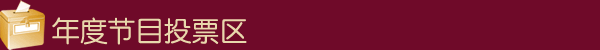 本次网络票选分为两个部分,第一部分为年度节目单项奖投票区:入选的众多优秀节目将分别角逐年度新闻节目、年度纪实节目、年度情感节目、年度益智游戏节目、年度体育节目、年度法治节目、年度真人秀节目、年度脱口秀节目八大重要奖项;第二部分为年度节目50强投票区:分为上星频道30佳和地面频道20强。